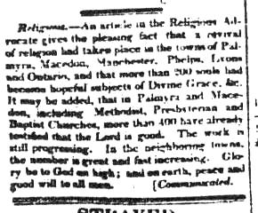 Palmyra newspaper and mentions the above revival. Note the publication date.