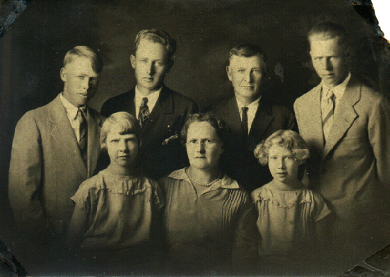 Left to Right, Back Row: Lloyd (Duke) Whitnah, Sherman Whitnah, Marshall Whitnah, Harvey Whitnah.Front:Ruby Whitnah, Edna Sadler, Alta Whitnah.