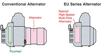 | Another feature exclusive to the EU models is Honda’s EcoThrottle system. This system incorporates a load-dependent speed control-type governor that offers excellent fuel economy by automatically adjusting engine speed to the optimum level, given the usage load. This not only reduces fuel consumption and operating noise in the normal usage range, but it also keeps exhaust emissions to levels that clear even the strictest CARB and EPA emission standards. |