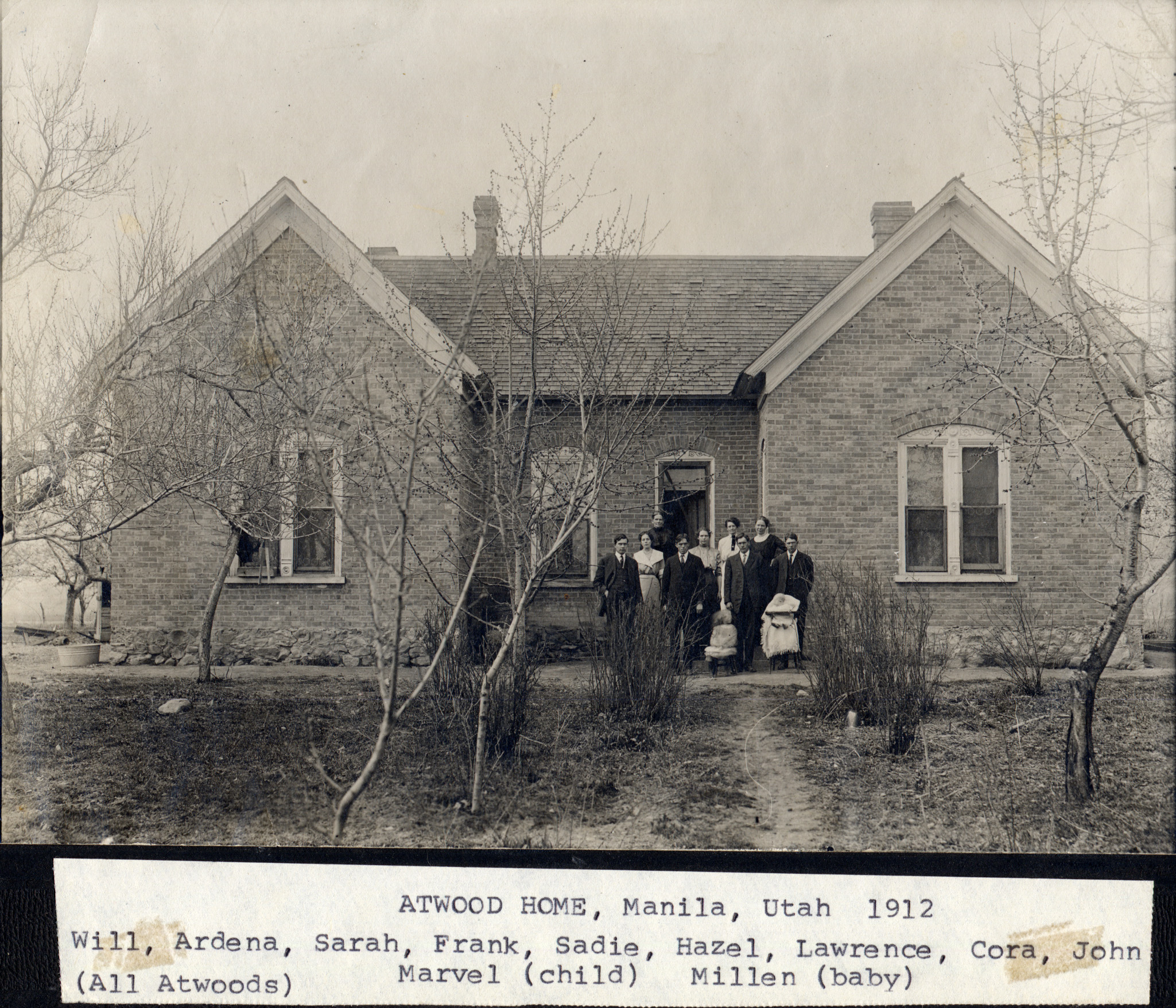 | Will, Ardena, Sarah, Frank, Sadie, Hazel, Lawrence, Cora, John , Marvel (child), Millen (baby) Atwood--Atwood Home Manilla UT--1912--SN12125:A-0367 | |