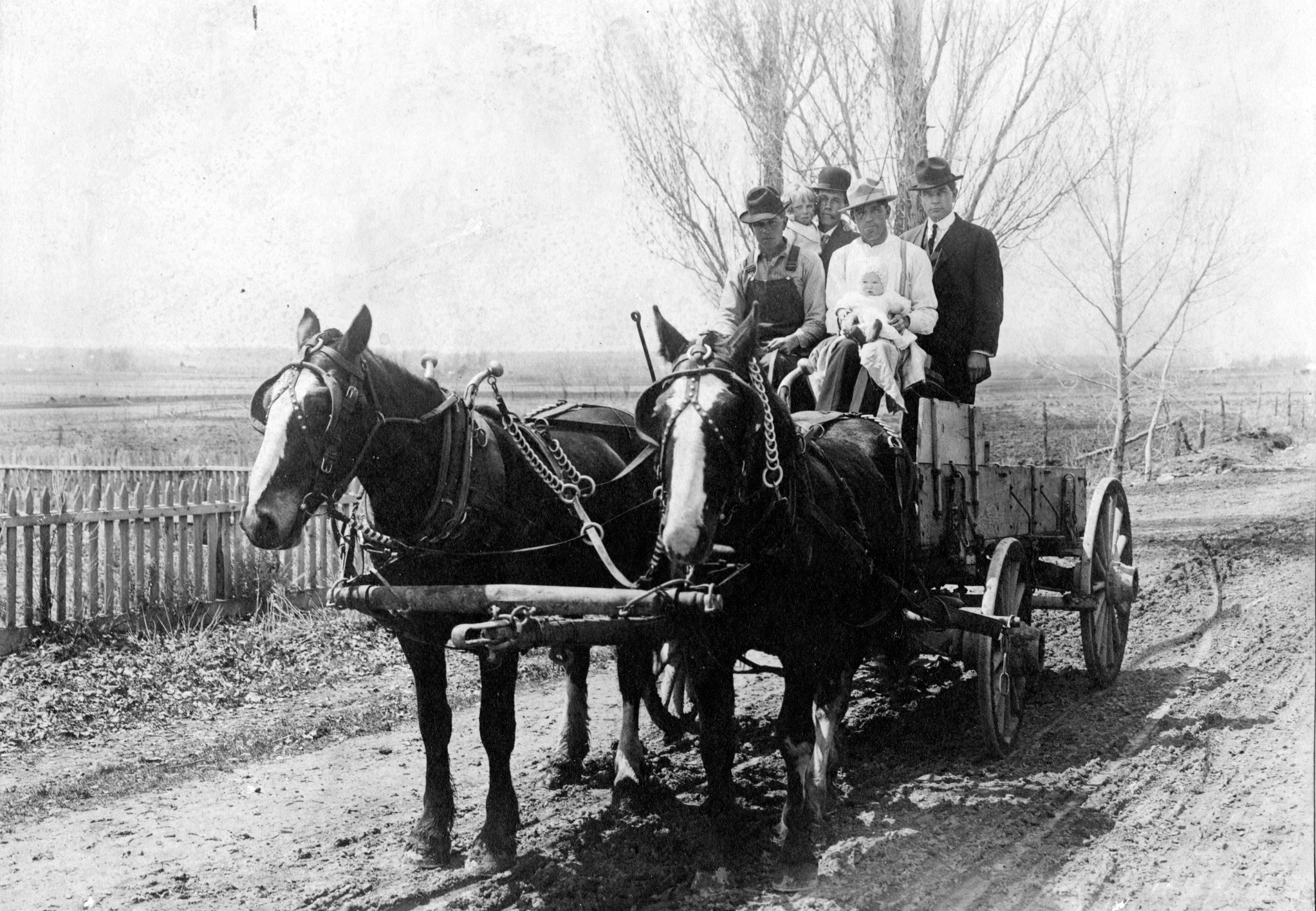 | John, Lawrence, Frank, Will, Millen (baby), Marvel--wagon team-- --SN12126:A-0061 | |