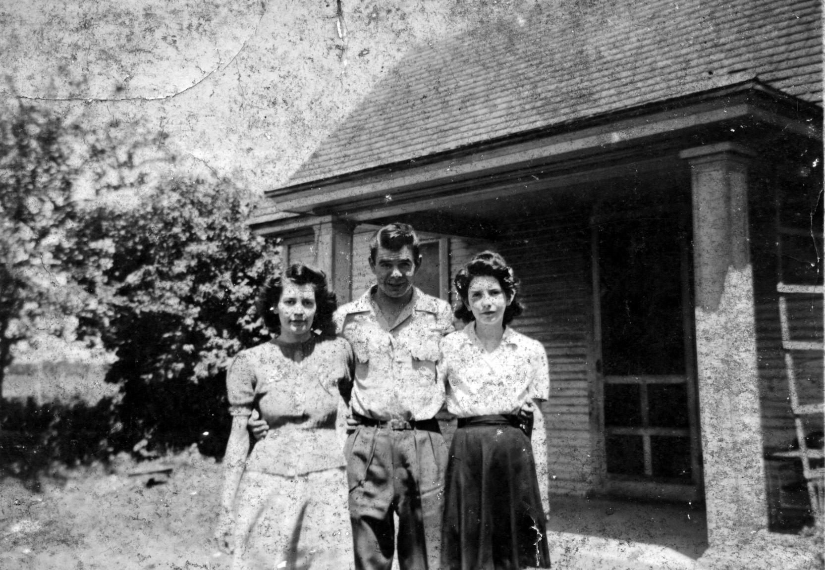 | Ava, John Rae, Nell Atwood--Ava (age 25), John Rae (age 23), Nell (age 15), American Fork. Looks like this photo was carried in someone's wallet during WWII--1943--A-0194 | |
