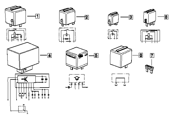 | 4 | Hazard warning relay | 1 | 61 31 2 305 700 | 1 | ||||