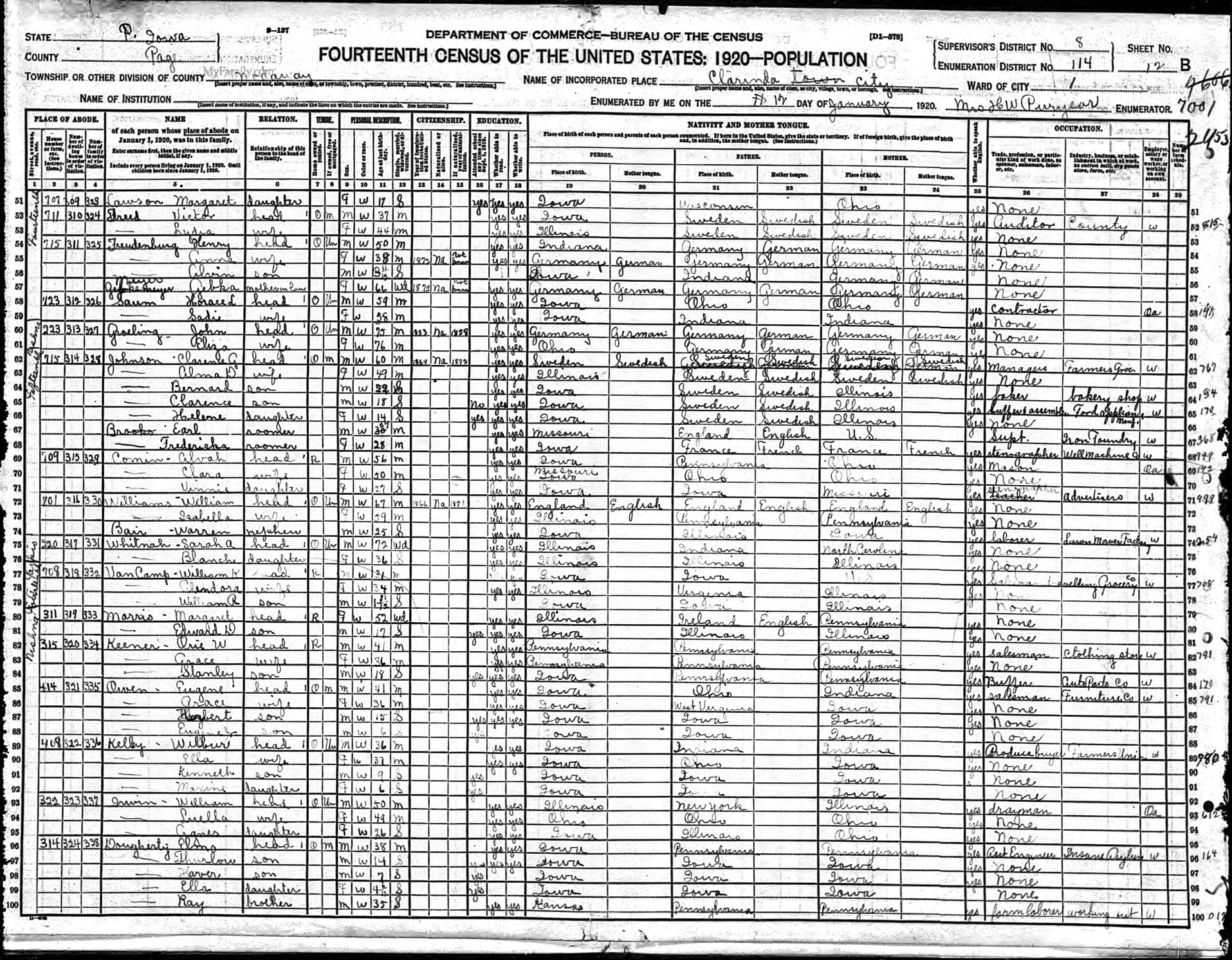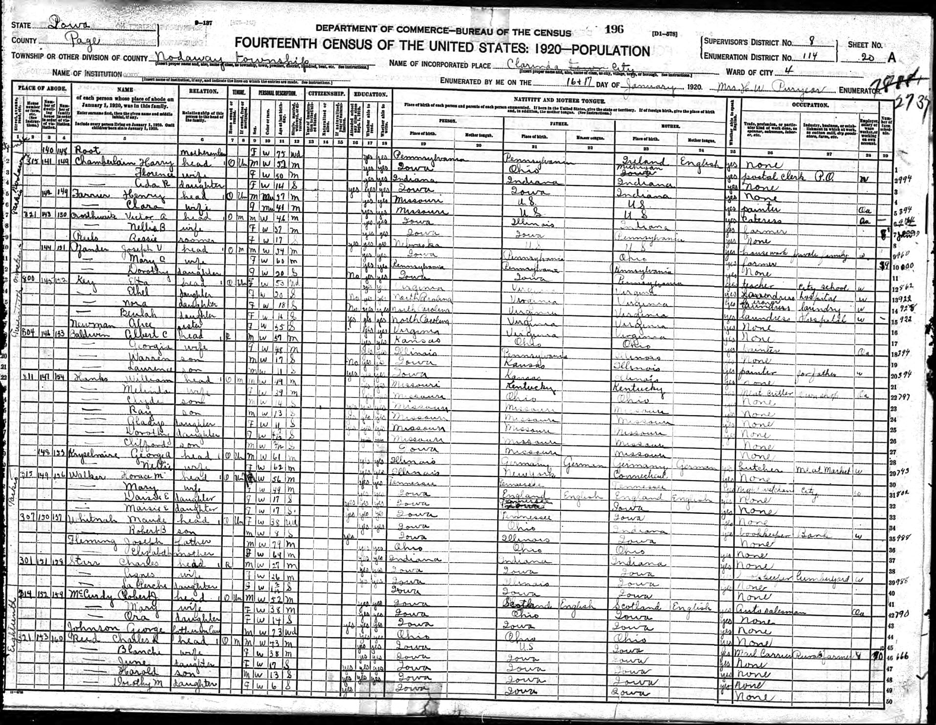 | Whitnah, Maude | Head | W | F | 38 | Wd | Iowa | Ohio | Indiana | Housekeeper | |