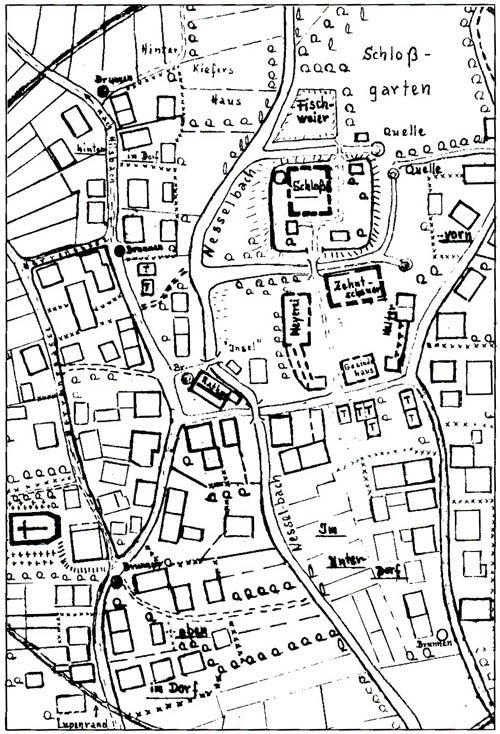 In 1710, the Weidknechts were living in the upper village (oben im Dorf at the lower middle of the map).